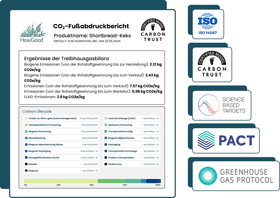 Mit wissenschaftlich fundierten Berichten, die auf dem GHG-Protokoll und ISO 14067 basieren, können Sie mühelos globale Vorschriften und Kundendatenanfragen bewältigen.