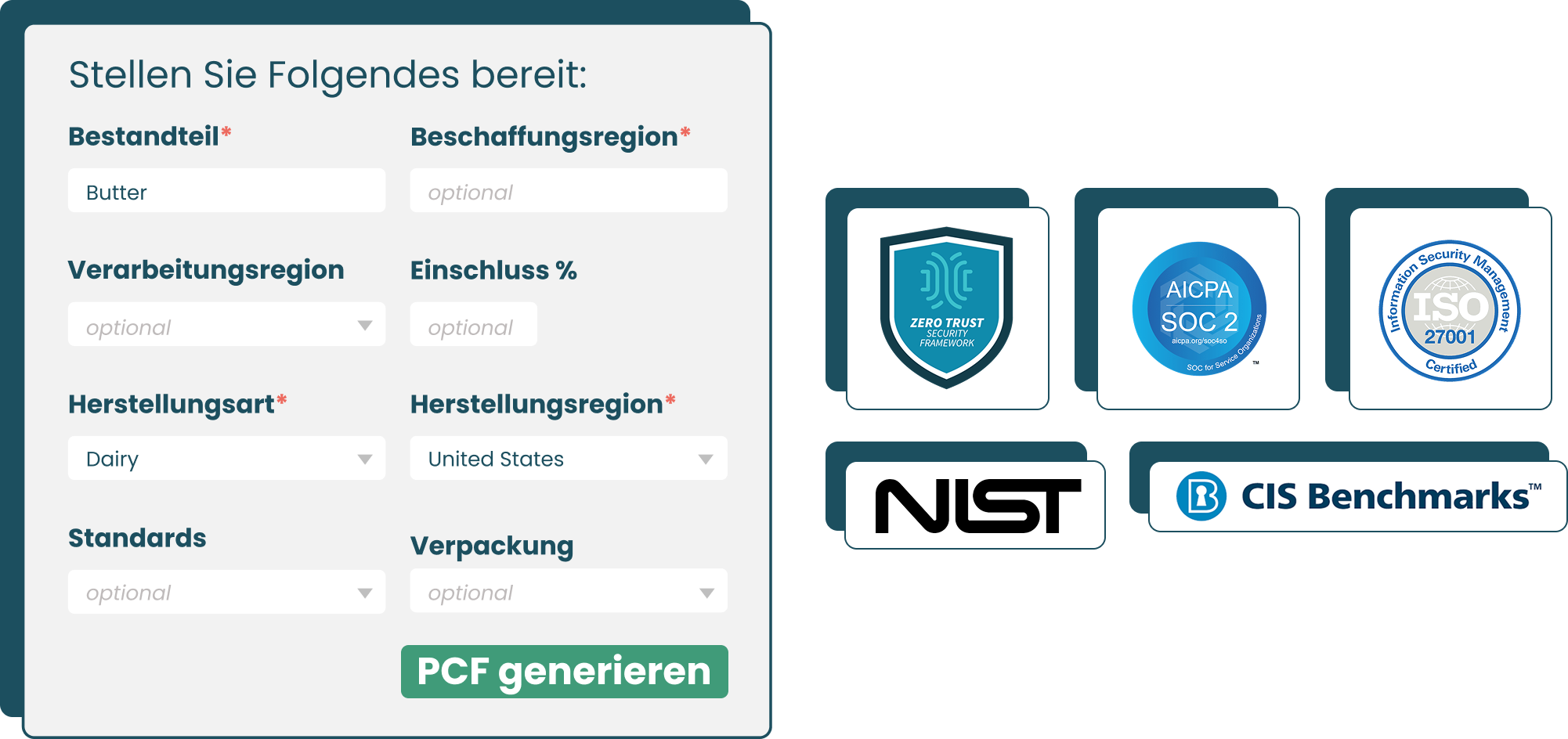 Sorgen Sie für Datensicherheit und schützen Sie Ihre firmeneigenen Rezepturen mit einer SOC 2-konformen Plattform, die von globalen Lebensmittelunternehmen und internationalen Koalitionen genutzt wird.