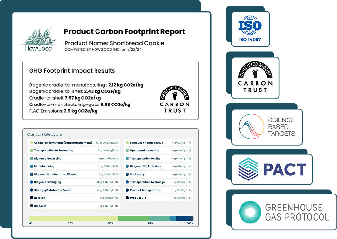 Calculate your GHG impact, water footprint, and more at the product- or ingredient-level with cradle-to-shelf carbon lifecycle reports.