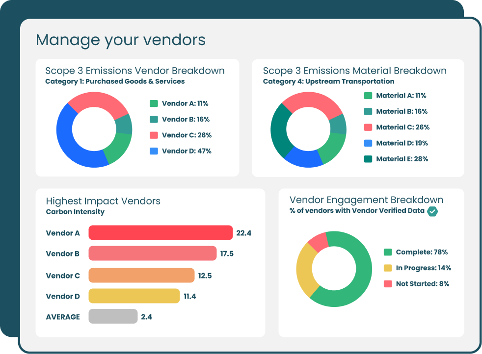 Stay on top of current and upcoming sustainability regulations with an easy-to-use platform for granular scope 3 reporting and tracking against Science Based Targets.